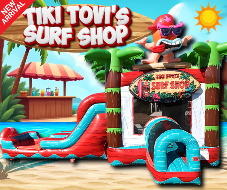 Tiki Tovi Surf Shop EXTRA LARGE Bounce House Dual slides (wet/dry)