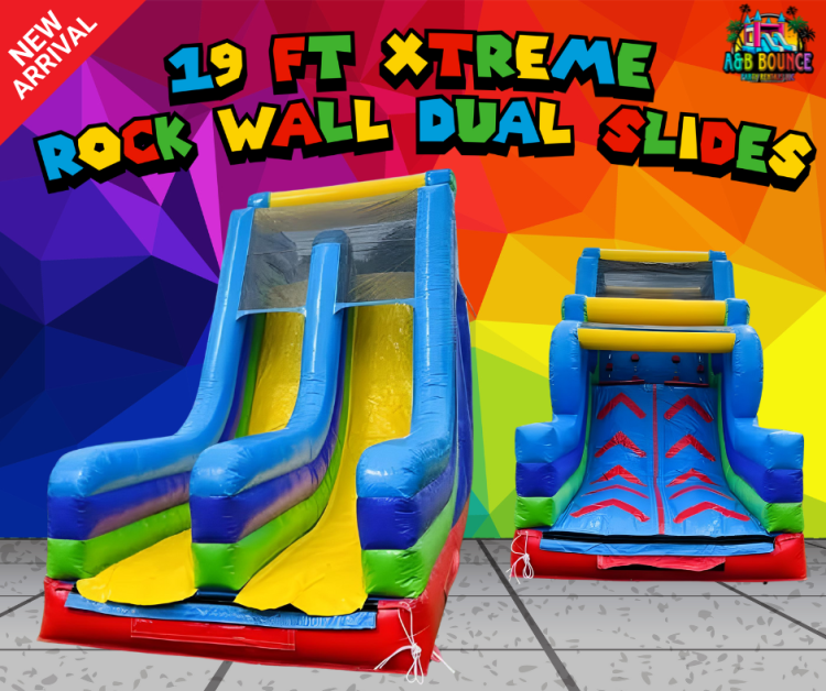 19 FT XTREME Rock wall with DUAL SLIDES (DRY)
